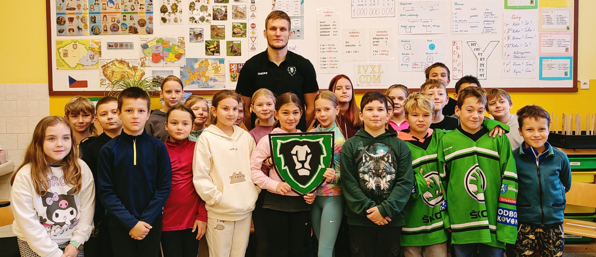 Hráči dorazili do školy ještě před osmou hodinou a po krátkém uvítání s paní ředitelkou Mgr. Brigitou Šulcovou zamířili do svých tříd. Někteří z nich se s dětmi setkali už poněkolikáté, pro jiné to byla premiéra. Během přibližně dvacetiminutových besed děti hráčům kladly nejrůznější dotazy – od hokejových až po zcela osobní –, nechyběly ani kvízy, kreslené obrázky či drobné dárky.